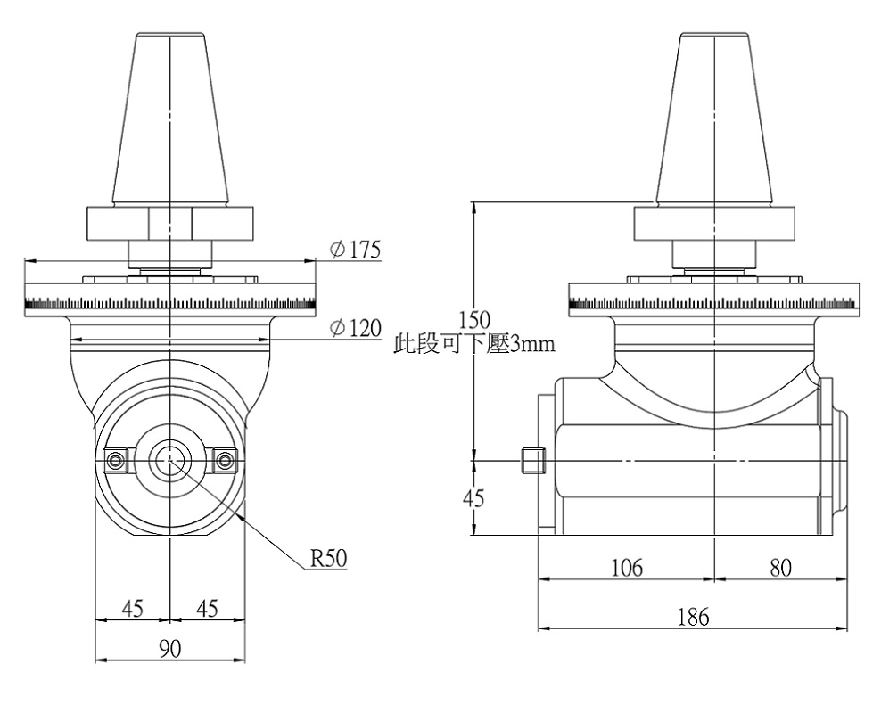 BT50-BT40-150 側銑頭