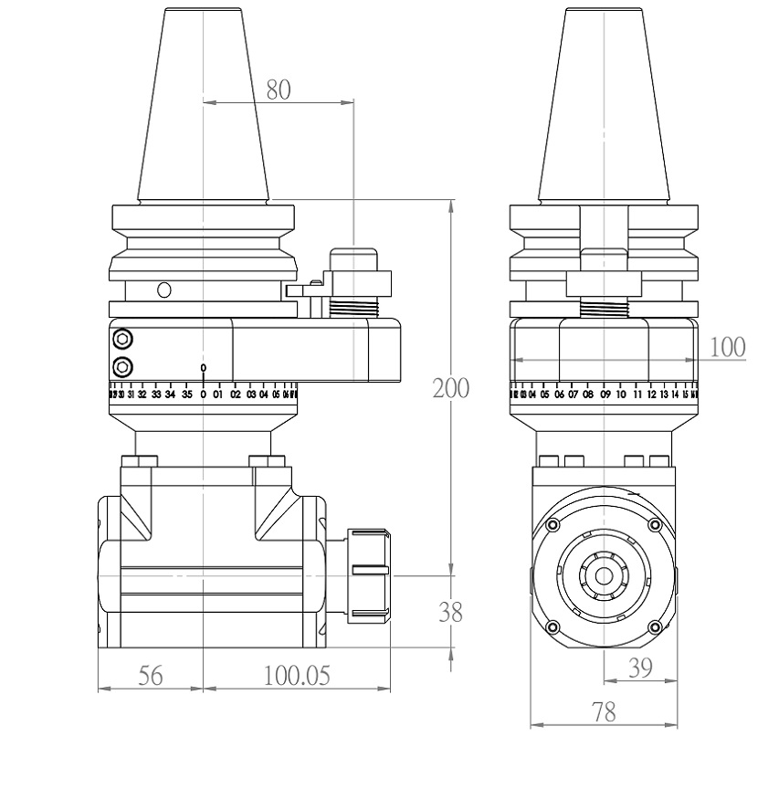 BT50-ER32-200 側銑頭
