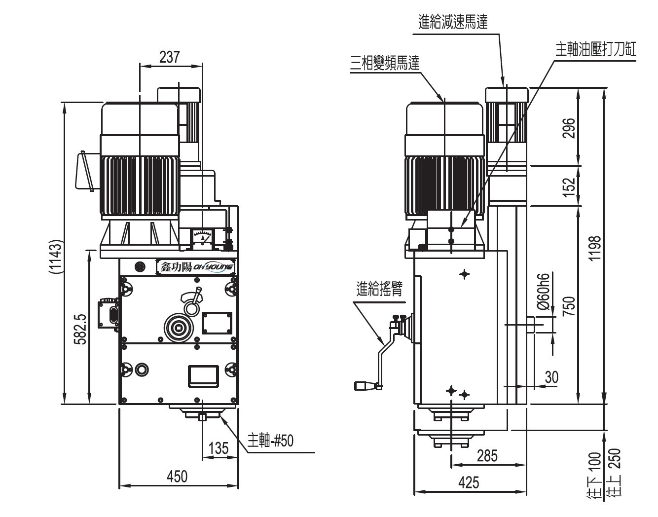 | 進給行程 | 350mm (往下 100mm , 往上 250mm) | ||||||||